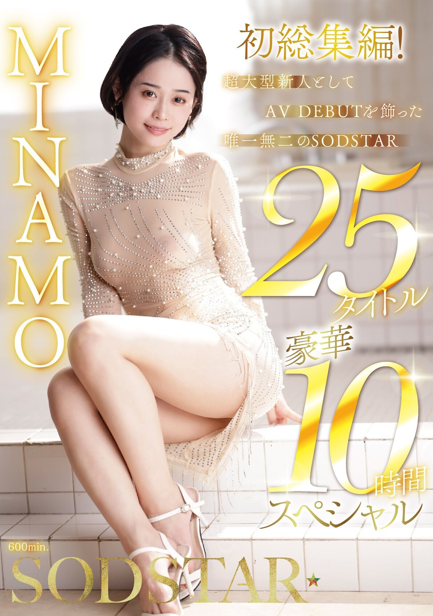 「MINAMO 初総集編!超大型新人としてAV DEBUTを飾った唯一無二のSODSTAR 25タイトル豪華10時間スペシャル」。